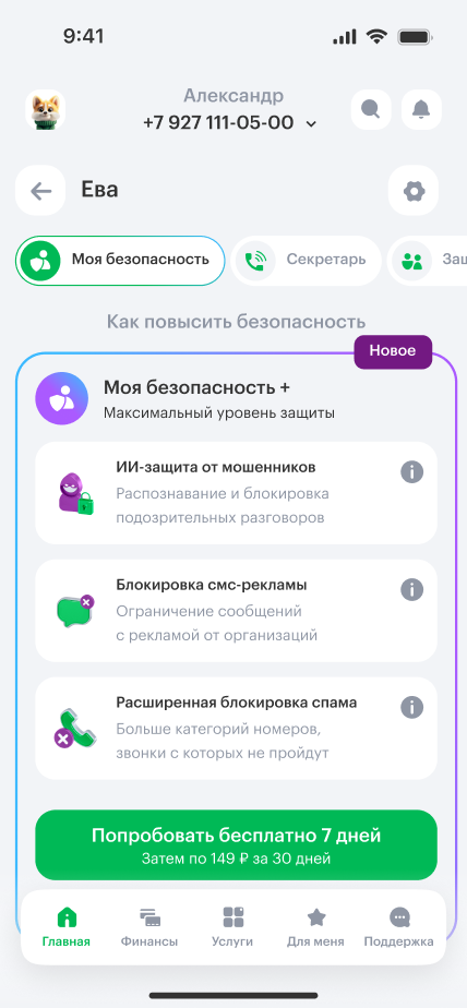 Защиту можно включить, если у ваших близких номер МегаФона